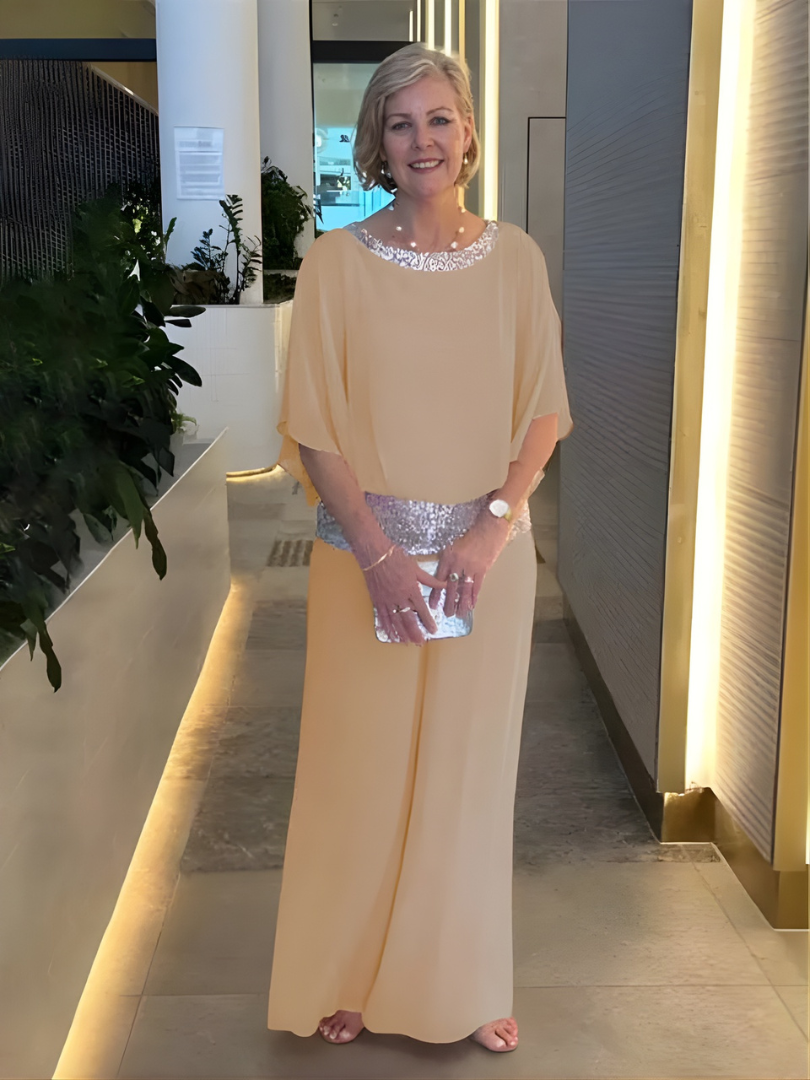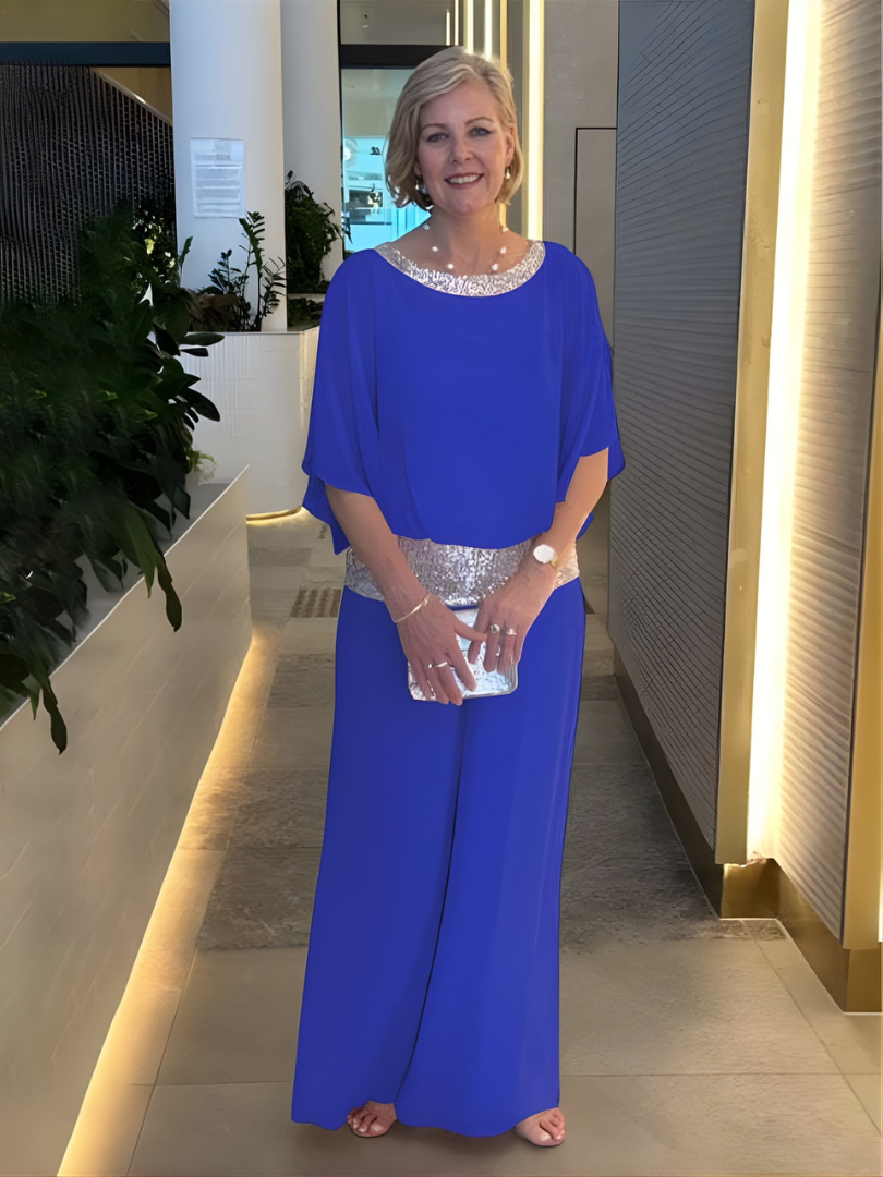 Sophisticated Design: The relaxed top with flowy wide-leg pants creates a graceful silhouette, ideal for formal events or upscale gatherings.